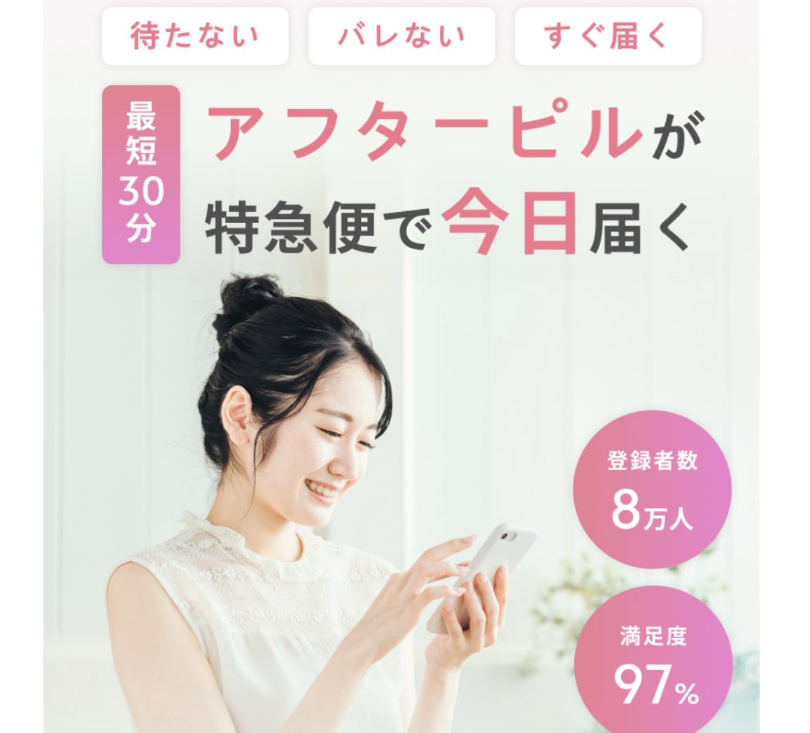 スマホやパソコンで受診できるアフターピルのオンライン処方サービスもあります。原則として、緊急避妊に関する診療は、女性の健康に関する相談窓口等において、対面診療が可能な医療機関等に係る情報を提供することとされていますが、地理的要因がある場合や、女性の心理的状況に鑑みて、対面診療が困難である場合には、例外的に、産婦人科医や厚生労働省が認めた研修を受けた医師が、初診からオンライン診療にて、アフターピルを処方することが可能です。オンラインクリニックでは、当日中に医師に診てもらい、すぐにアフターピルを処方してもらうことが可能です。