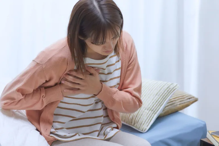 胸の痛みや強い動悸がある