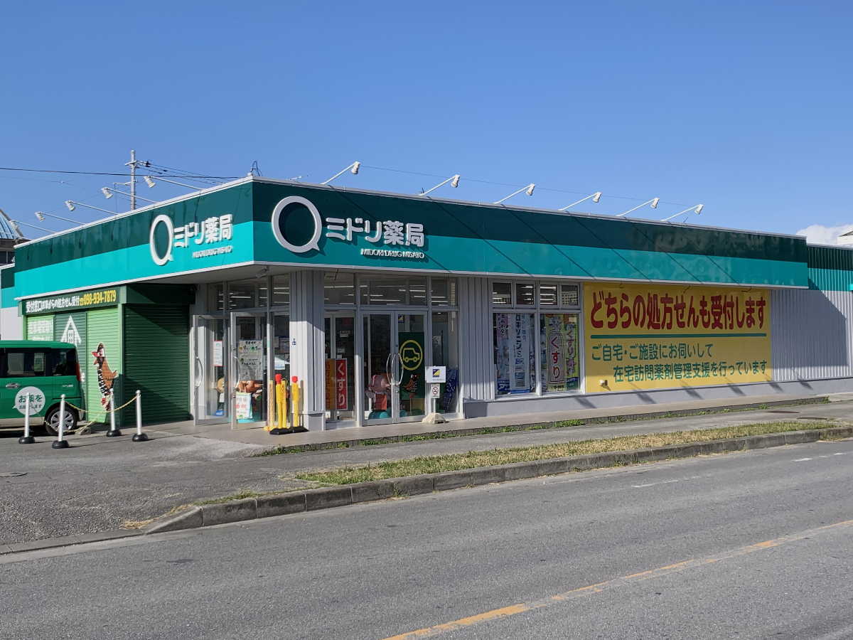 | 概要 | 沖縄市を中心に地域に根差した薬局を目指しております。門前以外に対応している医療機関も多く在庫も豊富でジェネリック医薬品も多数在庫しています。小児や慢性疾患から在宅医療・麻薬製剤・無菌調剤など幅広く対応いたします。 |