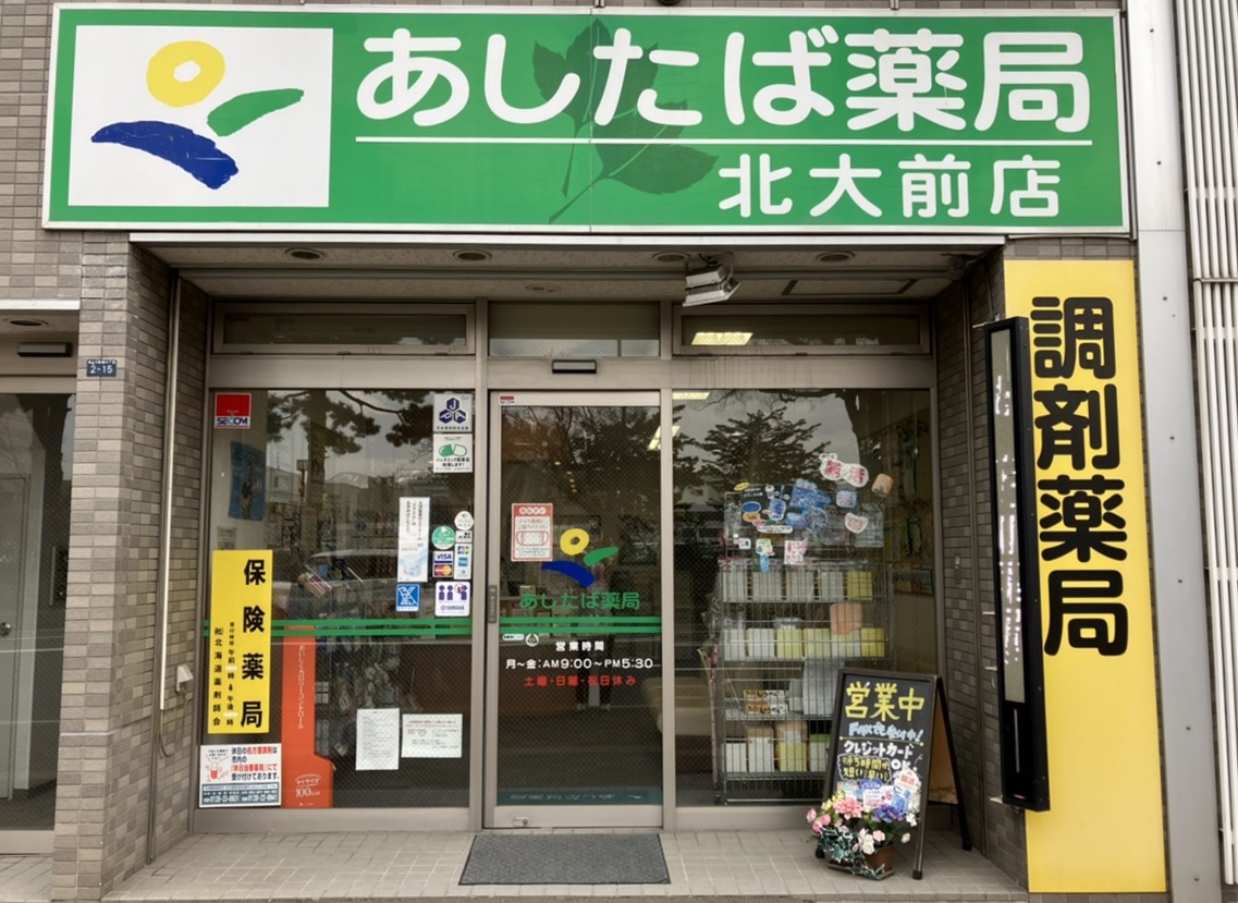 | 概要 | あしたば薬局グループは 【信頼】をテーマに選ばれるメディカルグループを目指して薬局を展開しています「北大前店」は札幌市北区北13条西4丁目 北海道大学病院前、北大前通に面した場所にある調剤薬局です |