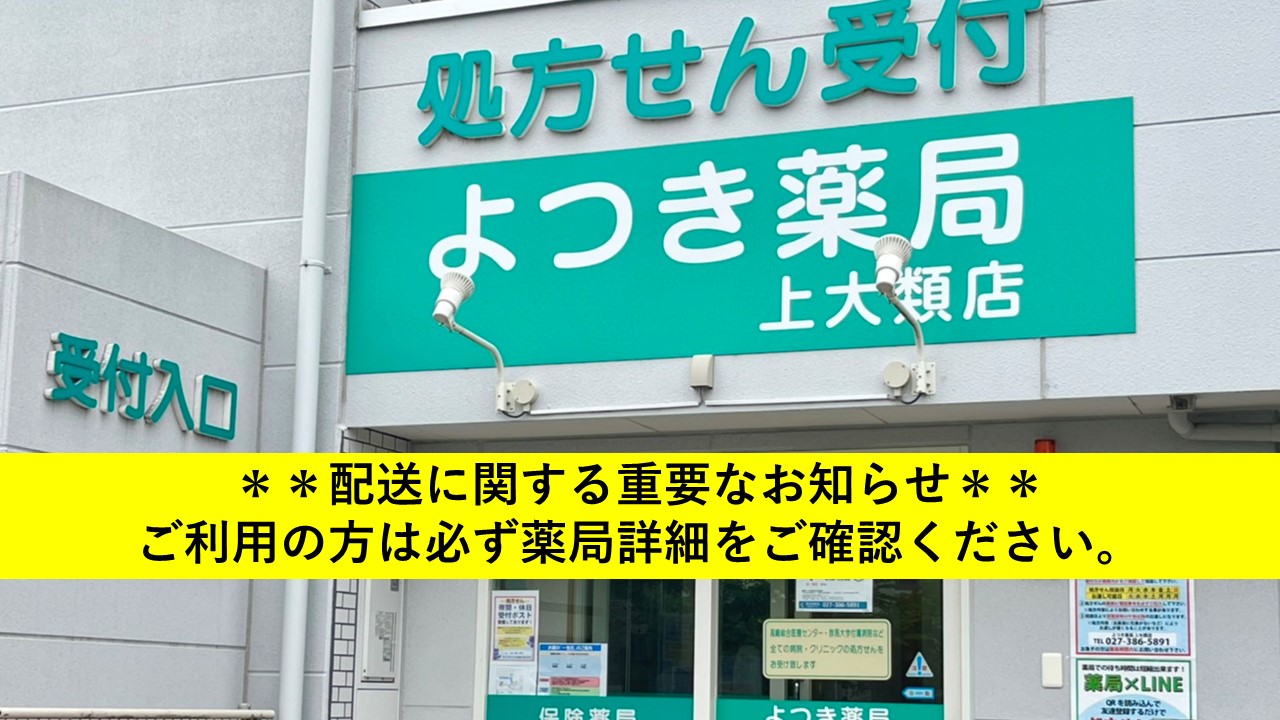 | 概要 | ✨地域の皆様に親しみやすく頼りになる薬局をモットーに笑顔で皆様をお迎えさせて頂いております✨🌈🌈予約時の注意点🌈🌈① 在庫状況により取り寄せが必要な場合があります。そのため週末に予約された場合は月曜日の配送になることがあります。② 16:00以降の予約は郵送の関係で翌々日に届きます。取り寄せにお時間いただく場合は改めてご連絡いたします。ご理解のほど何卒よろしくお願いいたします。 |